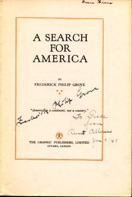 Grove, Frederick Philip. A Search for America. Ottawa: Graphic